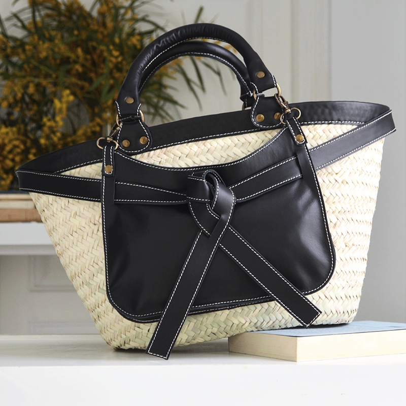 Le panier Nikki, intemporel de notre collection Studio Cuir se porte aussi bien en ville qu'en vacances. Paille et cuir orange se marient pour une allure au chic citadin. Une grande poche amovible en cuir, agrémentée d'une lanière fermé par un double noeud habille le devant du panier.